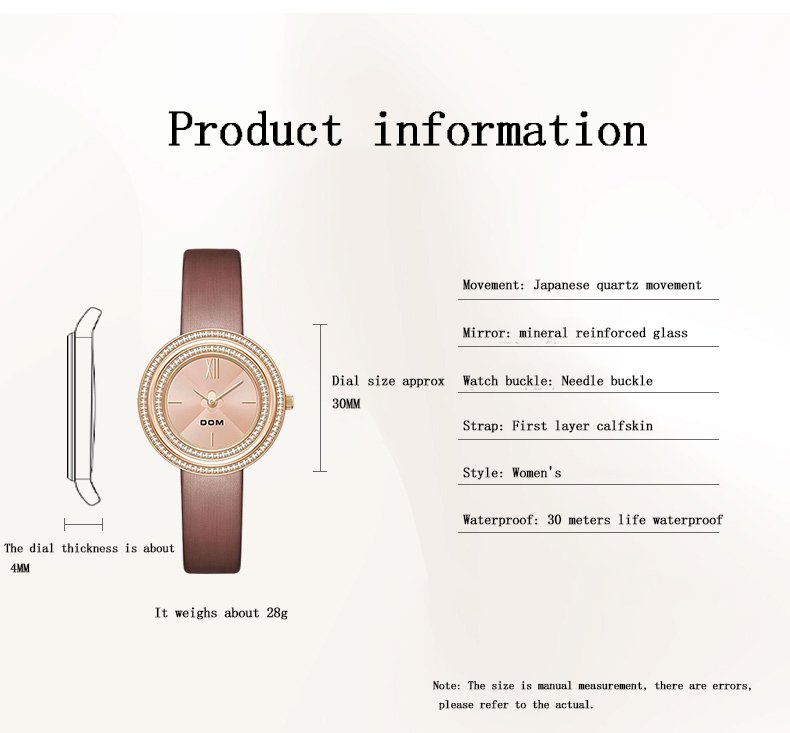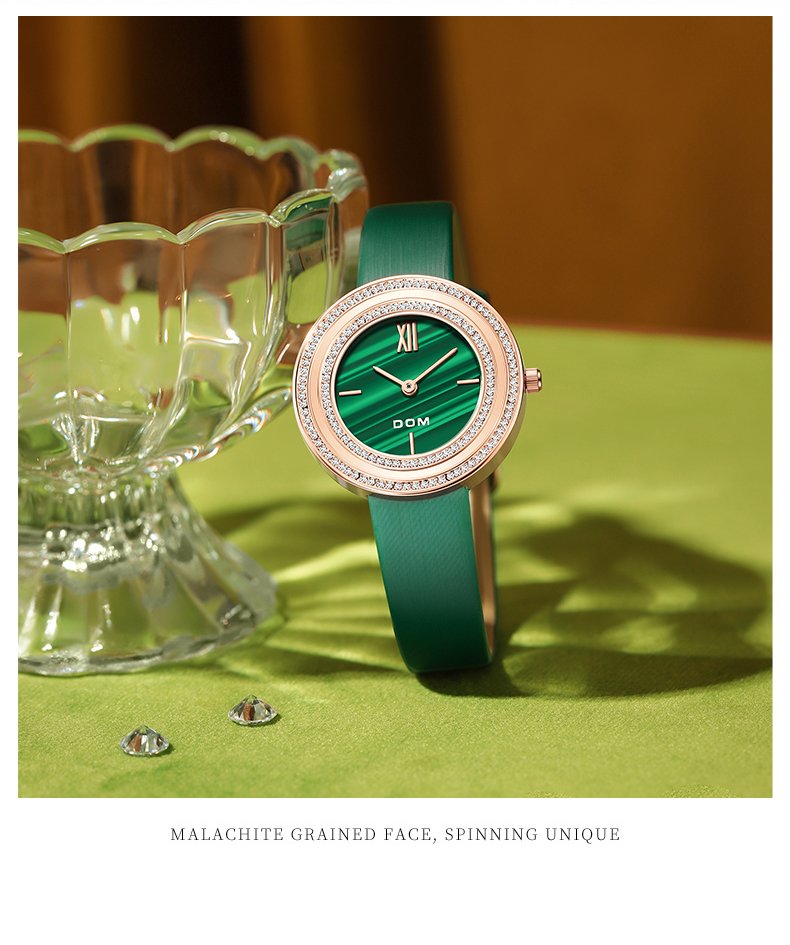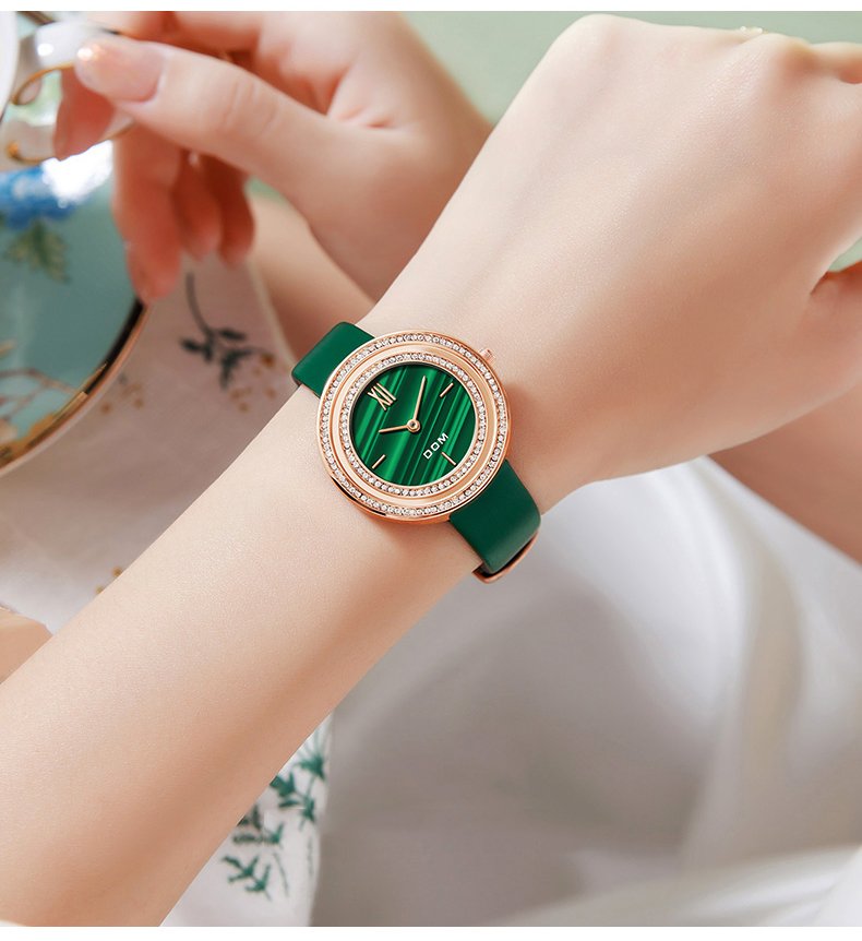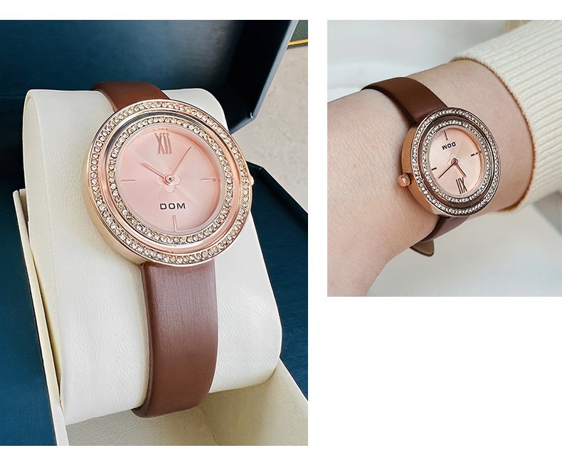 DOM 1612 Women’s Luxury Quartz Watch – Elegant Leather Retro Diamond Design