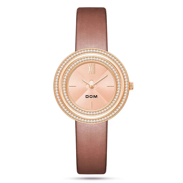 DOM 1612 Women’s Luxury Quartz Watch – Elegant Leather Retro Diamond Design