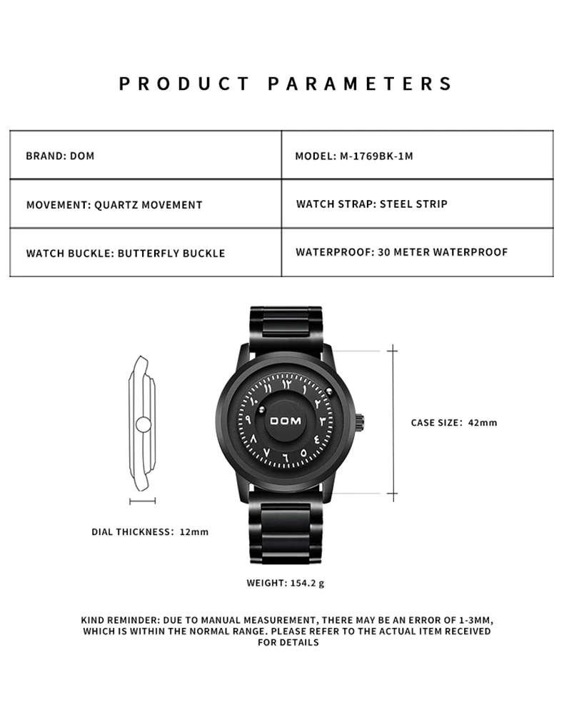 DOM 1769 Men’s Magnetic Scrolling Beads Quartz Watch – Antique Coin Design